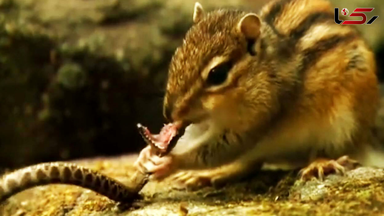 رکنا : فیلمی را که مشاهده می کنید لحظه خورده شدن یک بچه مار زنده را توسط یک سنجاب نشان می دهد.