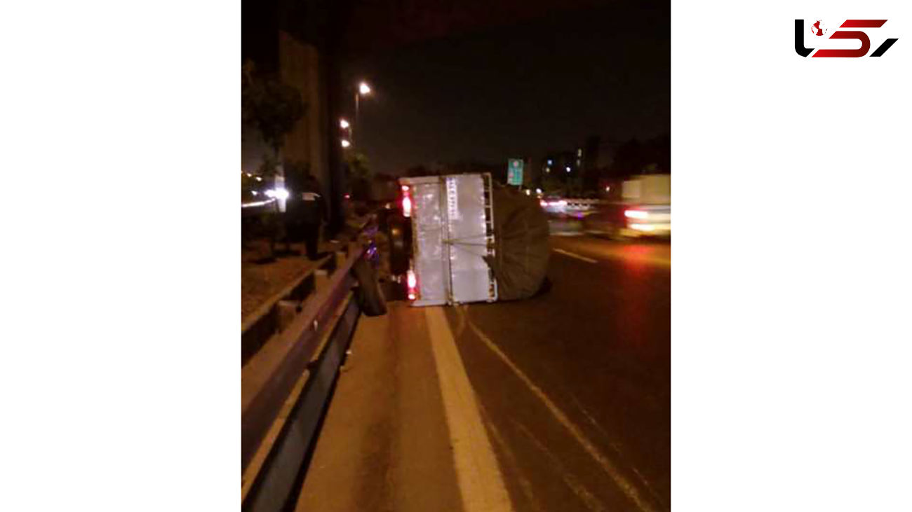 رئیس اداره تصادفات پلیس راهور پایتخت از واژگونی نیسان حامل بار در بزرگراه یاسینی خبر داد.