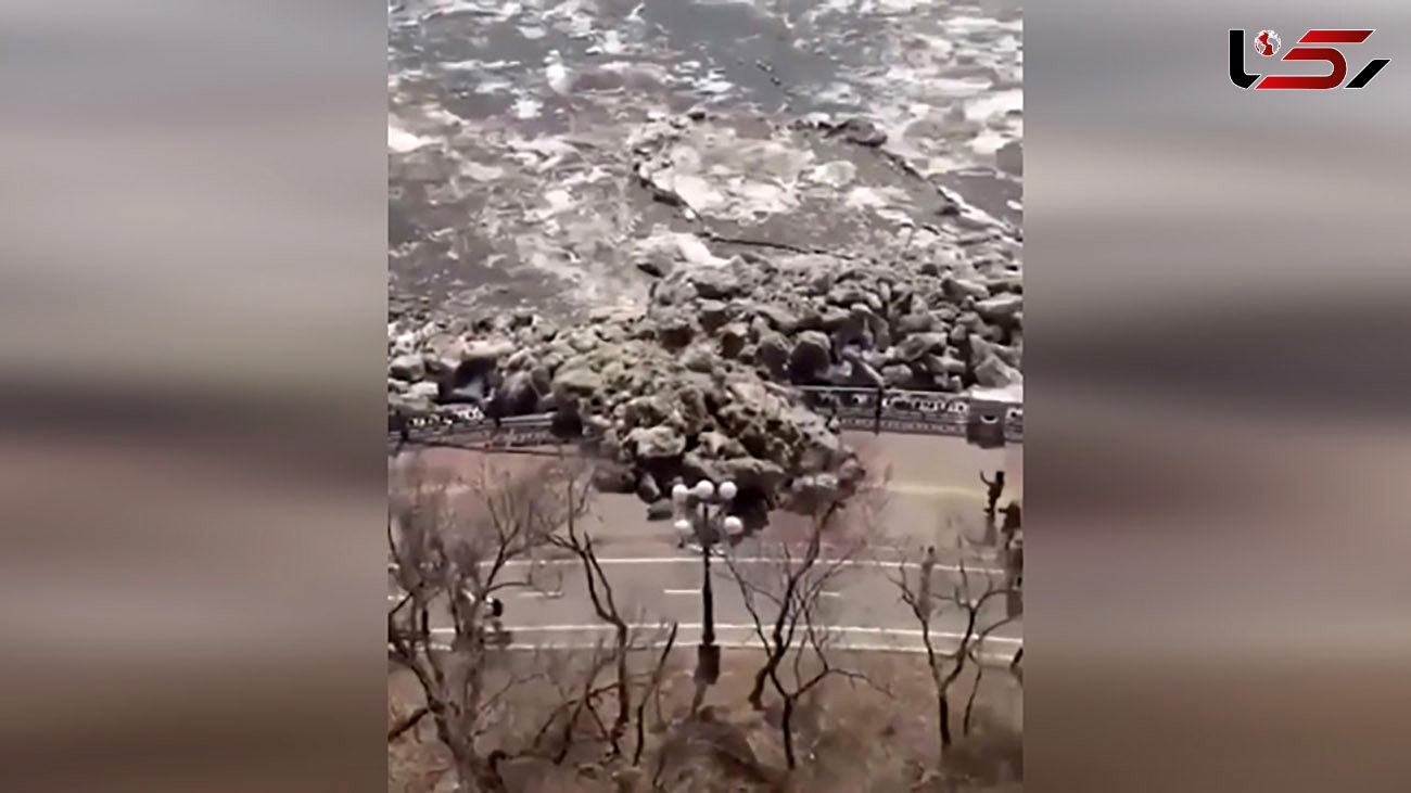 سیل تیکه های بزرگ یخ خیابان را مسدود کرد ! / حصارها تخریب شدند+ فیلم