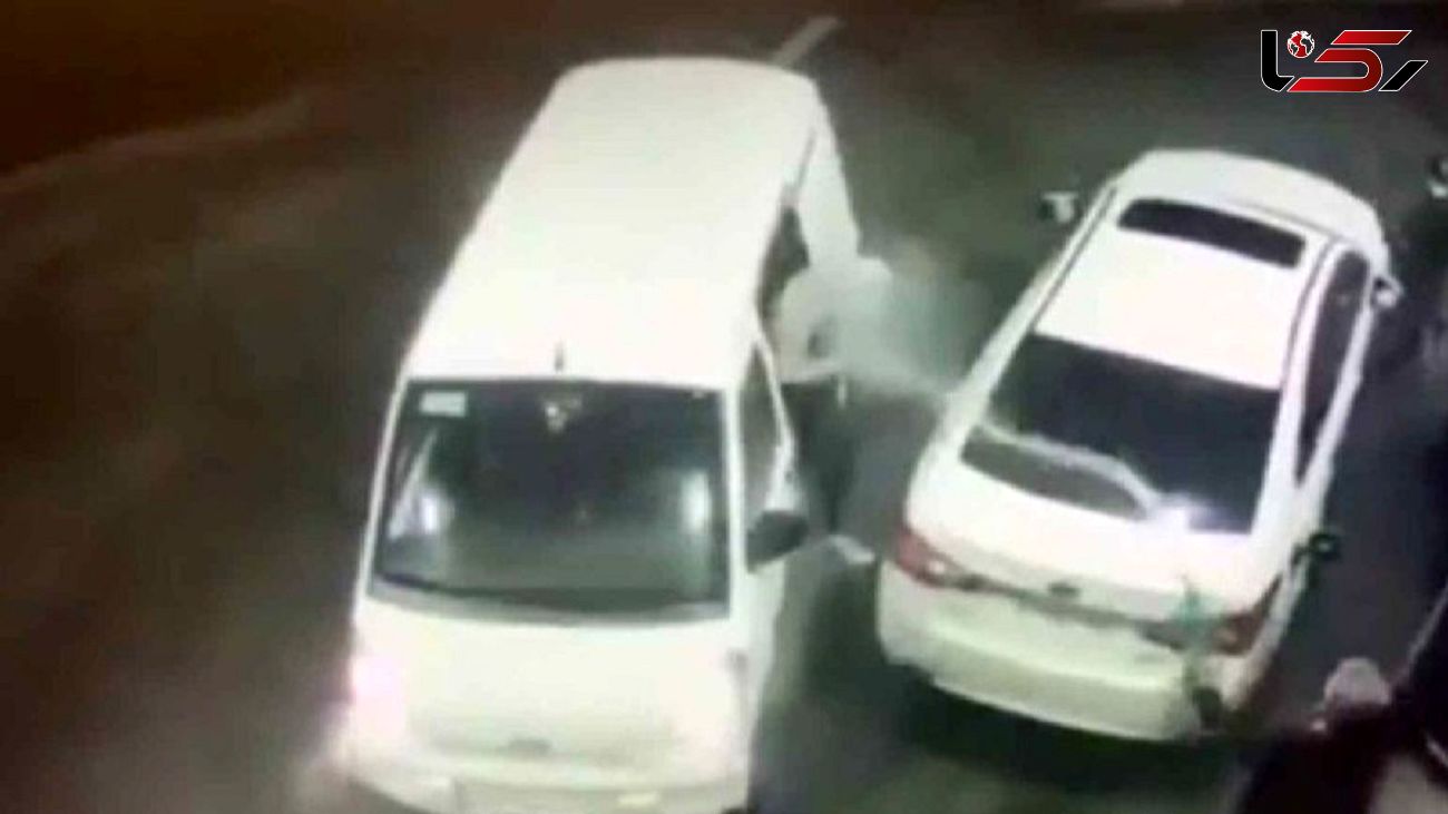 این راننده که متوجه نقشه سارقان شده است بلافاصله شیلنگ بنزین را به سمت سراق گرفته و بدن او را غرق بنزین میکند. سارق که با پاشیده شدن بنزین روی بدنش، جان خود را در خطر میبیند سوار خودروی ون شده و با همدستانش فرار میکند.
