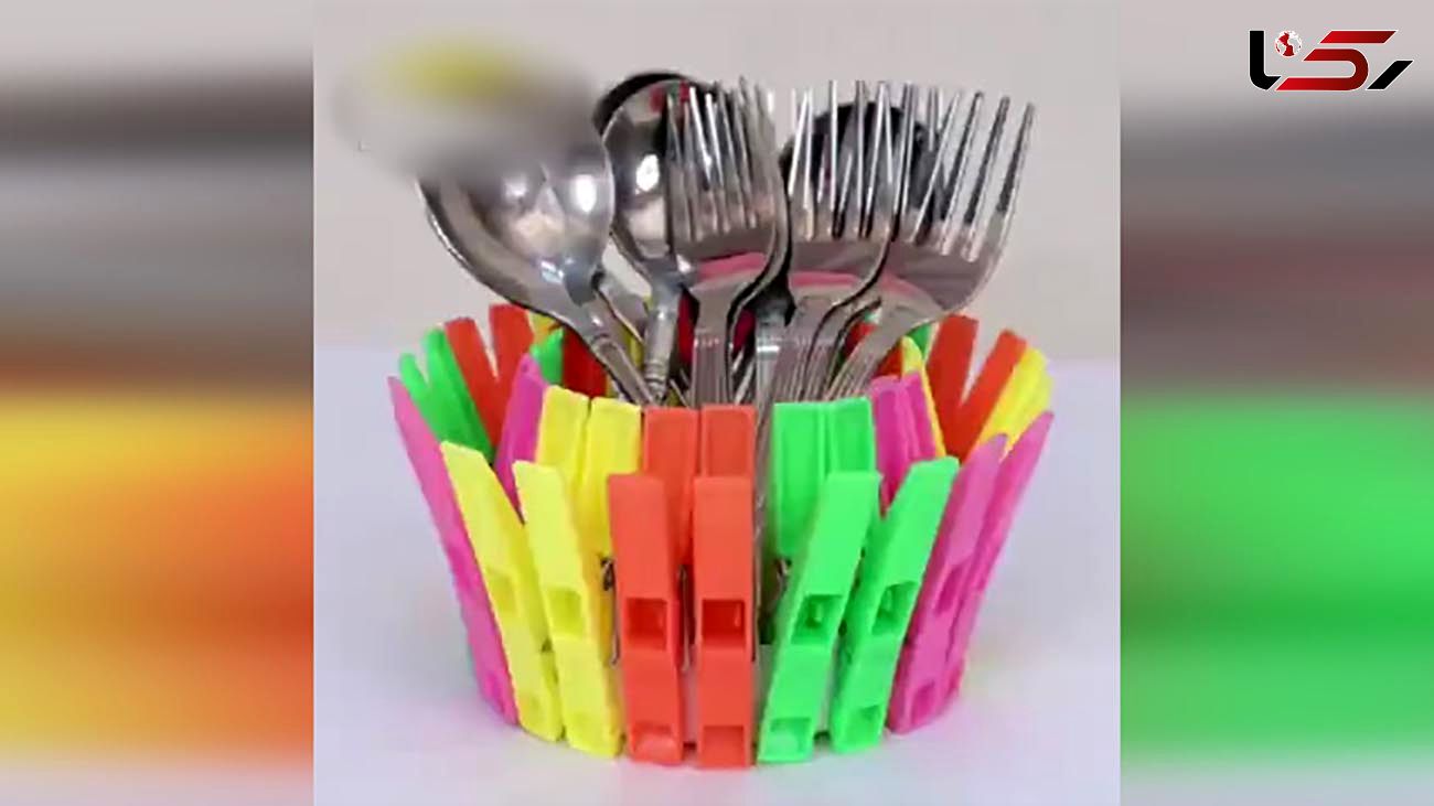 به گزارش رکنا ، با استفاده از چند گیره لباس و یک ظرف پلاستیکی میتوان به راحتی یک جاقاشقی متفاوت درست کرد.