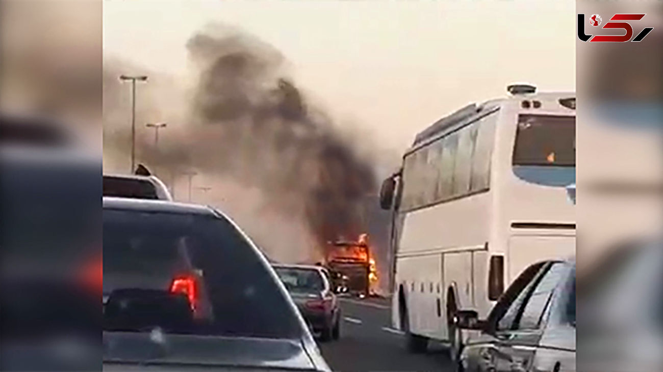 حوادث رکنا : اتوبوس مسافربری در جاده قم به تهران دچار آتش سوزی شد.