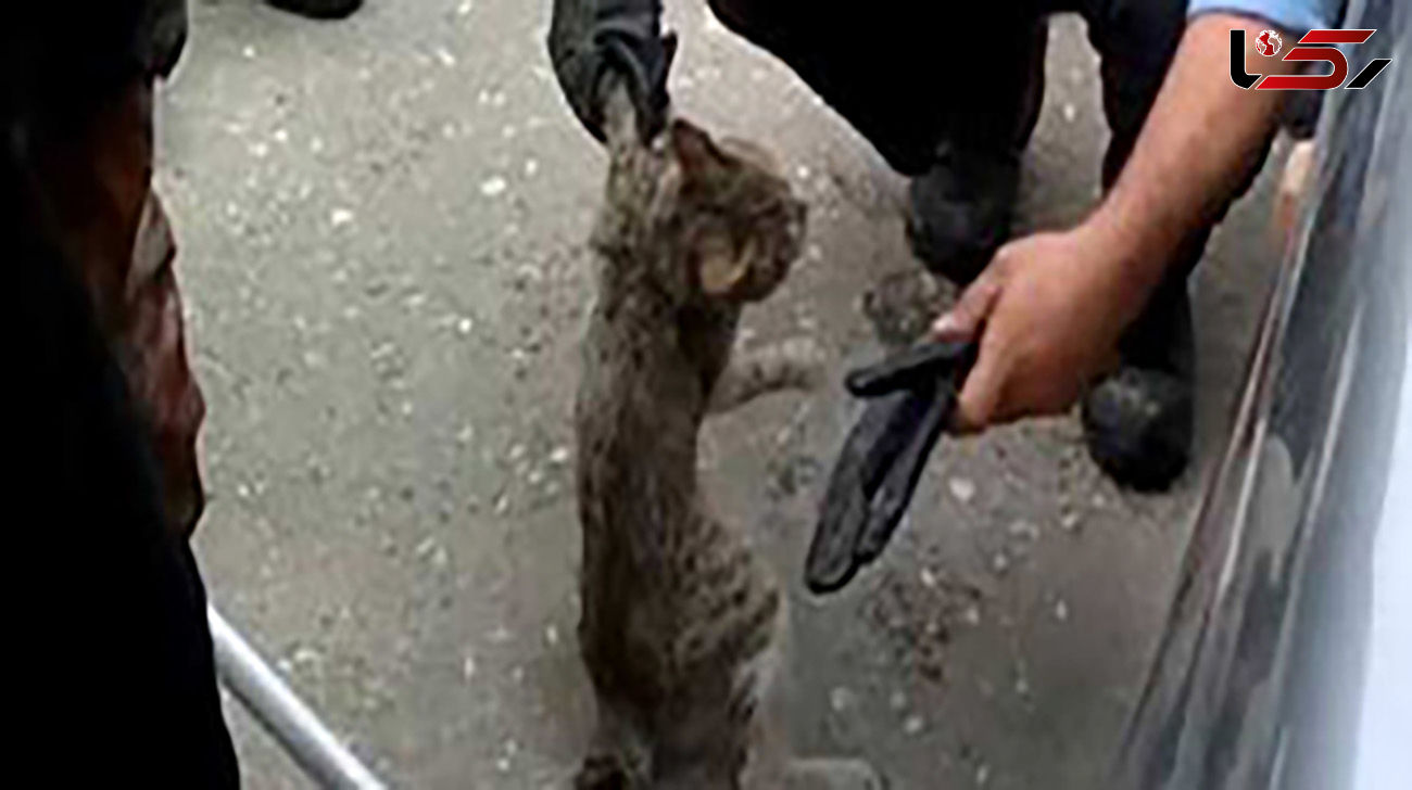 فیلم نجات گربه گرفتار در موتور ماشین / فداکاری آتش نشانان مشهدی