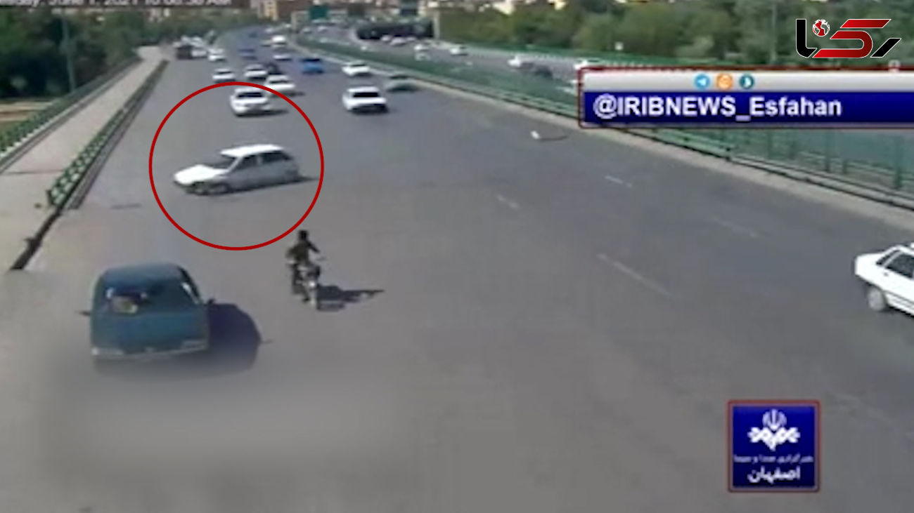 فیلم شوکه کننده از لحظه سقوط پراید از روی پل / در اصفهان رخ داد
