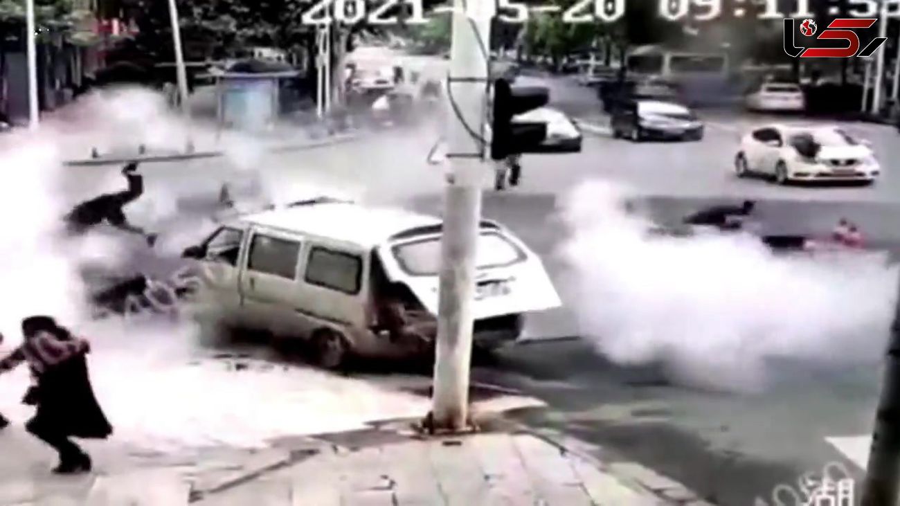 حوادث رکنا:هنگام کار تعمیرات جادهای در شهر ووهان چین انفجار گاز باعث جدا شدن قسمتی از آسفالت شد.
