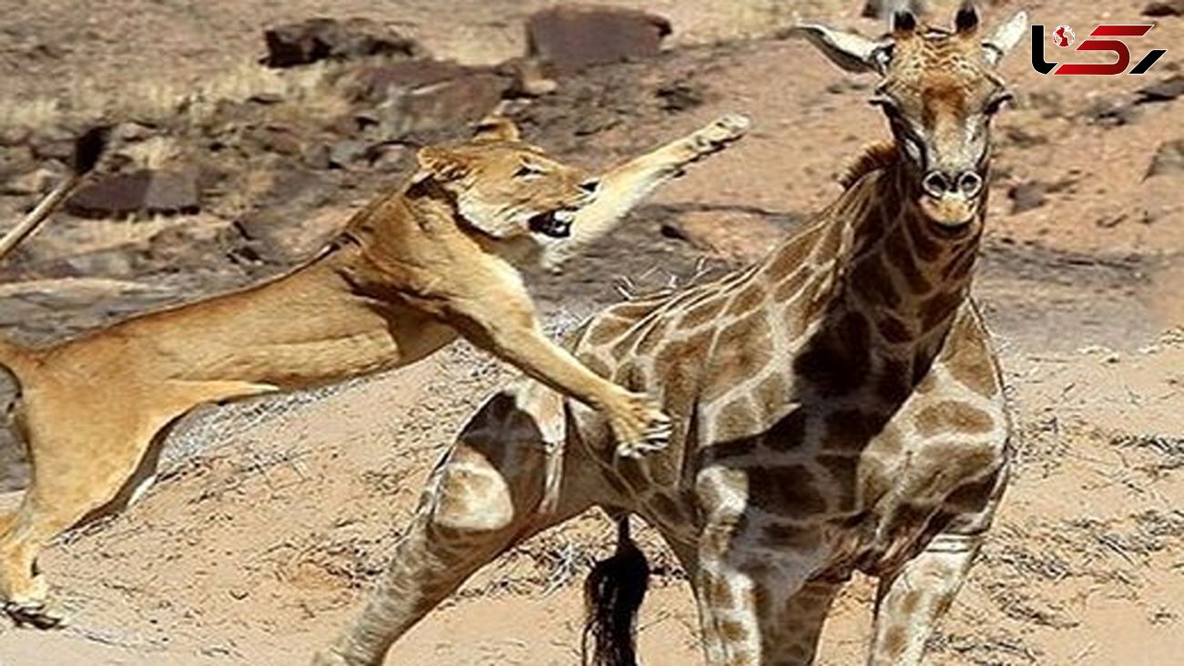 زرافه نگون بخت طعمه شیر شد + فیلم