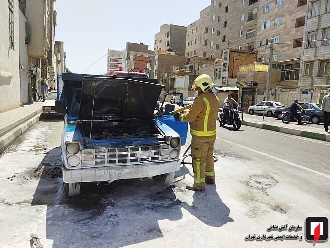 به گزارش رکنا، ساعت 15:11 دقیقه روز گذشته در پی تماس تلفنی شهروندان مبنی بر آتش سوزی یک دستگاه خودرو وانت نیسان در شهرک شریعتی، خیابان ماهان، خیابان دلجویی ستاد فرماندهی سازمان آتش نشانی تهران پس از دریافت اطلاعات از سوی شهروندان، آتش نشانان ایستگاه 81 را به محل حادثه اعزام کرد.