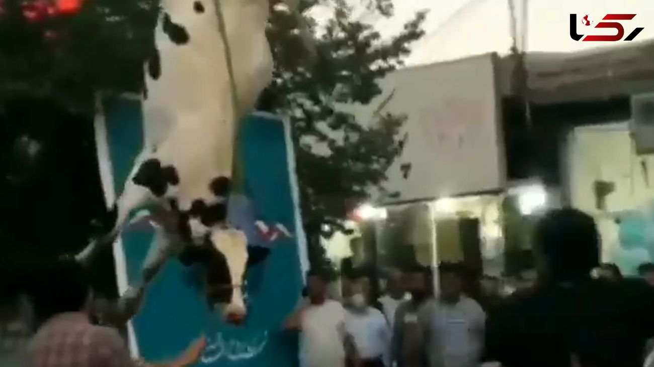 حوادث رکنا: یک گاو توسط کاندید انتخاباتی در سیرجان از دم از روی یک جرثقیل آویزان شد که صحنه دلخراش را رقم زد.