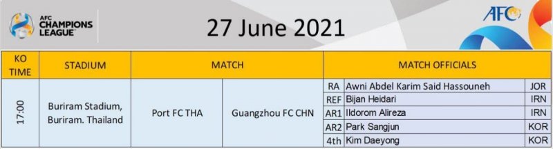 به گزارش "ورزش سه"، در چارچوب رقابت های لیگ قهرمانان آسیا در منطقه شرق فردا دو تیم پورت اف سی تایلند و گوانگژوی چین در شهر بوریرام تایلند به مصاف یکدیگر میروند.