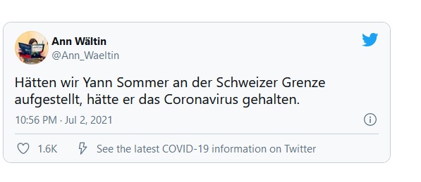 تیم ملی سوئیس دو شب پیش در مرحله یک چهارم نهایی رو در روی اسپانیا قرار گرفت. آنها ابتدا گل اول را دریافت کردند اما در نیمه دوم کار را به تساوی کشاندند. با این حال اخراج رمو فرولر باعث شد که کار برای آنها دشوار شود اما درخشش خیره کننده یان زومر کار را به ضربات پنالتی کشاند. اما سوئیسی ها در ضیافتهای پنالتی عملکرد بسیار بدی داشتند تا حذف تلخ و البته آبرومندانه ای را تجربه کنند.