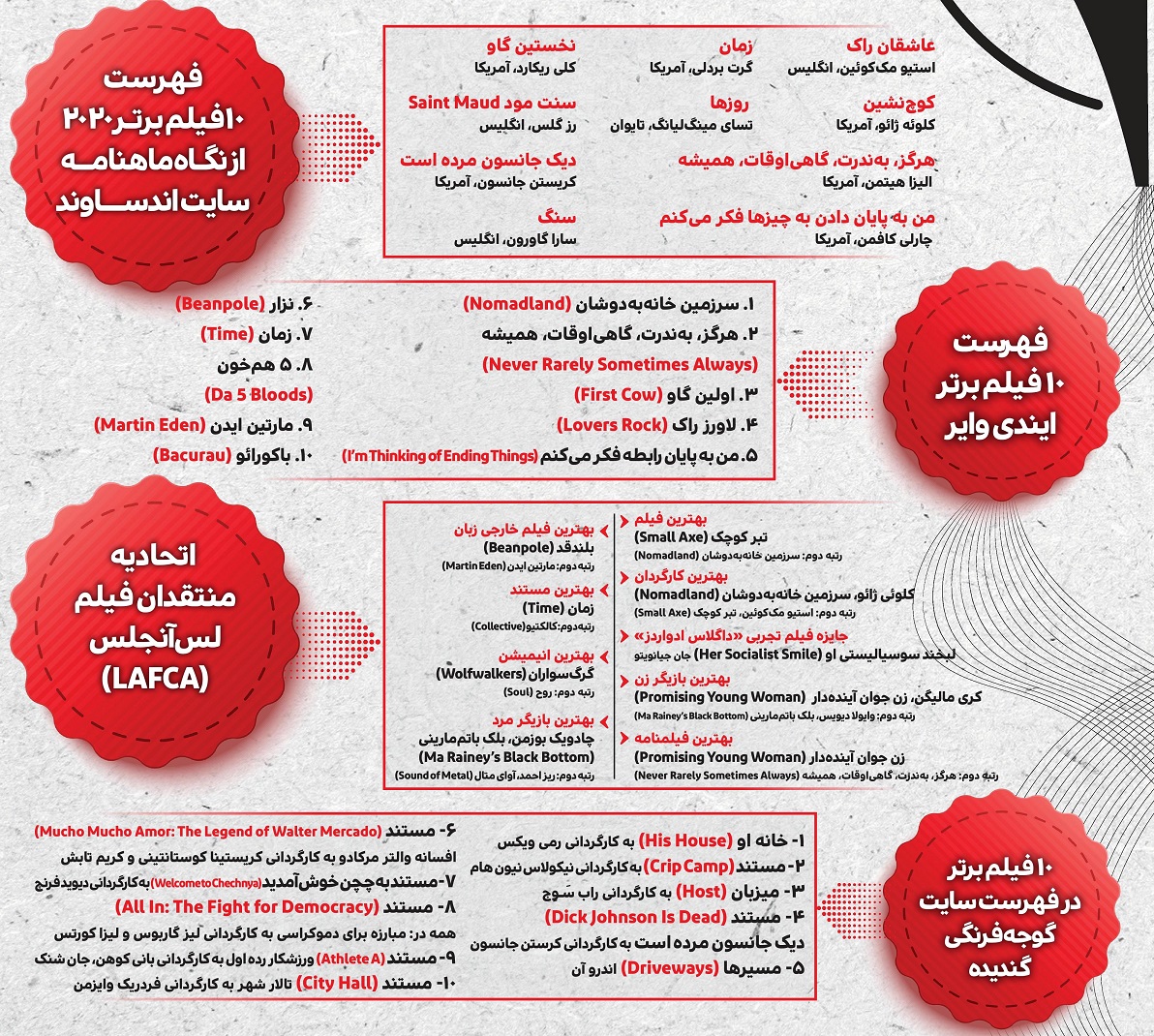 نگاهی به چند فهرست رتبهبندی فیلمهای سال 2020 توسط منتقدان دنیا