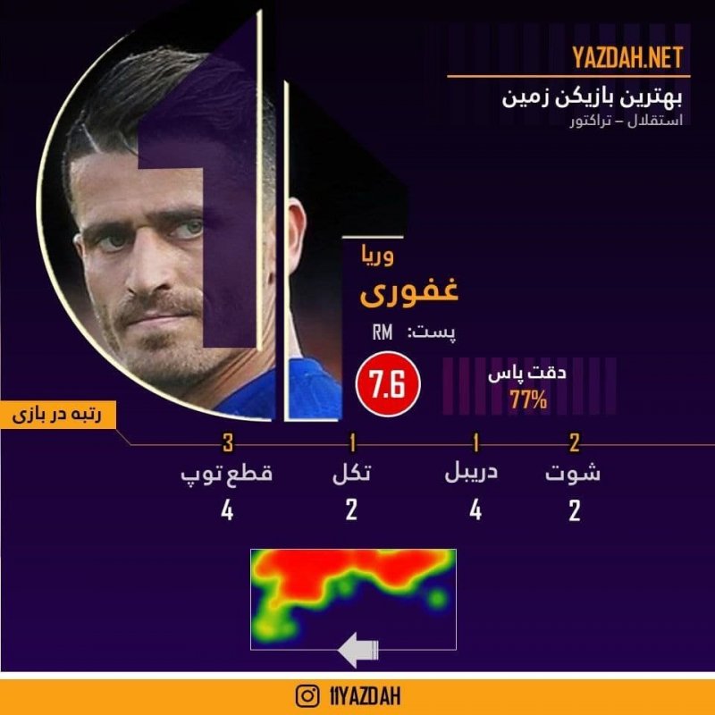 کاپیتان استقلال طبق اعلان سایت آماری یازده در بازی برابر تراکتور با توجه به عملکردی که داشت، بهترین بازیکن زمین انتخاب شد. او با دریافت نمره 7.6 و 2 شوت و 4 دریبل موفق در کنار 2 تکل یکی از نفرات برجسته تیمش در این جدال محسوب میشد.