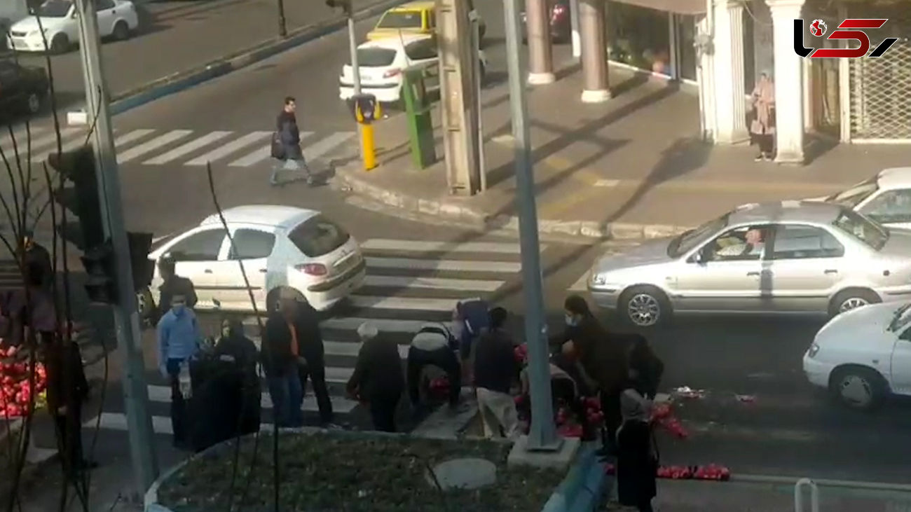 در این صحنه مردم رشت به کمک این مرد شتافتند و با هم میوه هایش را از روی زمین جمع کردند.
