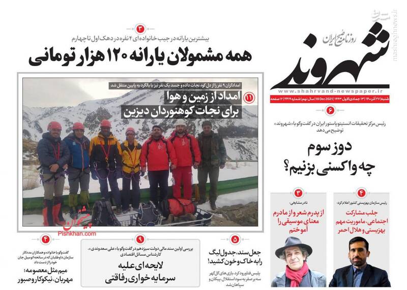 شمال نیوز شنبه 27 آذر 1400 - 07:08