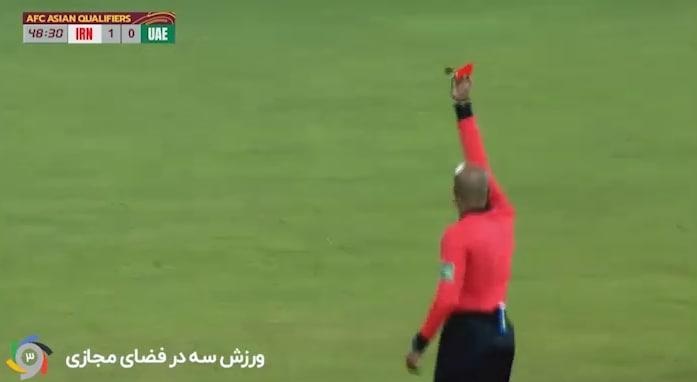 صادق محرمی که در نیمه اول با کارت زرد الکاف جریمه شده بود، در دقیقه سوم نیمه دوم با یک تکل بازیکن حریف را در میانه میدان سرنگون کرد. در حالی که کمتر کسی تصور می کرد با توجه به اخطار نیمه اول صادق، داور کارت زرد دوم را به او نشان دهد اما داور بازی بی درنگ کارت زرد و سپس قرمز را مقابل چشمان بازیکن تیم ملی قرار داد تا او در حالتی ناباورانه زمین بازی را ترک کند.