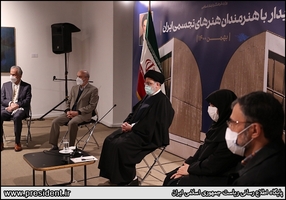 به گزارش خبرگزاری صدا و سیما به نقل از پایگاه اطلاع رسانی ریاست جمهوری، دکتر سید ابراهیم رئیسی امروز (چهارشنبه) در دیدار با جمعی از هنرمندان هنرهای تجسمی کشور در موزه هنرهای معاصر ایران، آثار خلق شده توسط هنرمندان را جلوه اندیشه، خرد و نگاه هنرمندانه آنها توصیف کرد و گفت: یک اثر هنری میتواند ساعتها سخن و بیان و حتی آنچه را در یک کتاب شرح داده میشود در یک نما به تصویر بکشد و پیام این کتاب و سخنها را برای نسلها و عصرهای طولانی ماندگار کند.