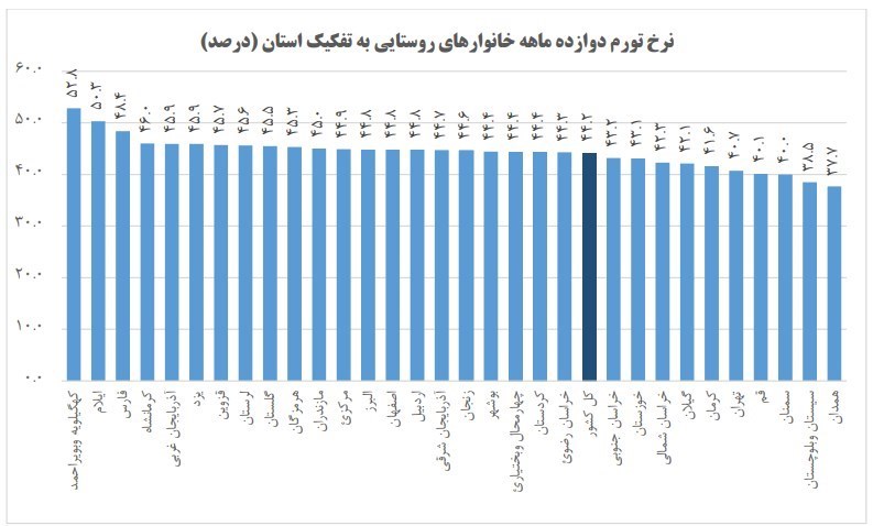 نکته قابل توجه در تعیین تورم خانوارهای شهری و روستایی است که استان فارس با تورم روستایی سالانه 48.4 درصد رتبه سوم را در کشور دارد که هرچند نسبت به ماه گذشته کاهش داشته اما باز هم از میانگین کشوری بیشتر است.