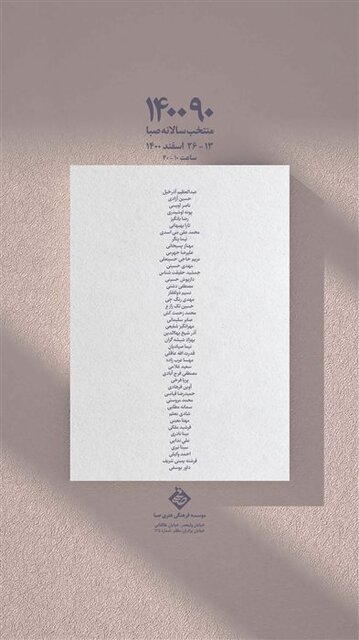 «۱۴۰۰۹۰» نام نمایشگاه گروهی است که به نمایش آثار هنرمندان مختلفی اختصاص دارد و در گالری موسسه فرهنگی ـ هنری صبا به نشانی تهران، خیابان ولی عصر، خیابان طالقانی، خیابان شهید برادران مظفر، شماره ۱۲۵ درحال برگزاری است. این نمایشگاه همچنین همه روزه از ساعت ۱۶ الی ۱۹ پذیرای بازدیدکنندگان است.