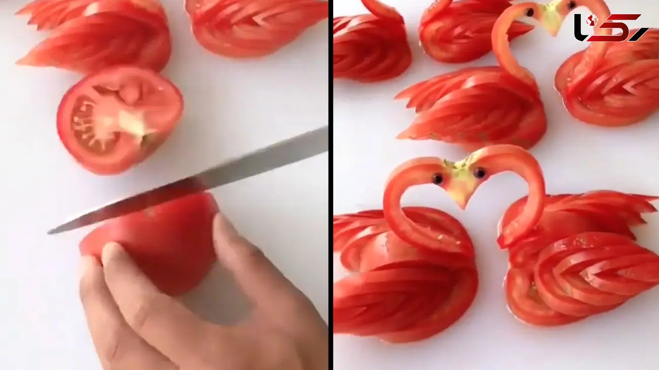 به گزارش رکنا، تزئین گوجه فرنگی سالاد در مراسم مهمانی و جشن ها بسیار رایج است. شما می توانید گوجه فرنگی را با برش های نازک و یکدست و سپس در هم قرار دادن این تکه های تهیه شده به شکل قو دربیاورید. برای اینکه مراحل این کار را راحت تر بتوانید درک کنید این فیلم را مشاهده کنید.