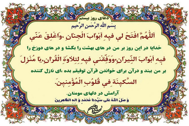 در شرح دعای روز بیستم ماه مبارک رمضان آمده است: منظور از اینکه میگوییم خدایا درهای بهشت را بر روی من بگشای این است که خداوند ما را از گناهانی که در طول عمر خویش انجام دادهایم پاک سازد و حسنات و کارهای نیک ما را افزون سازد .