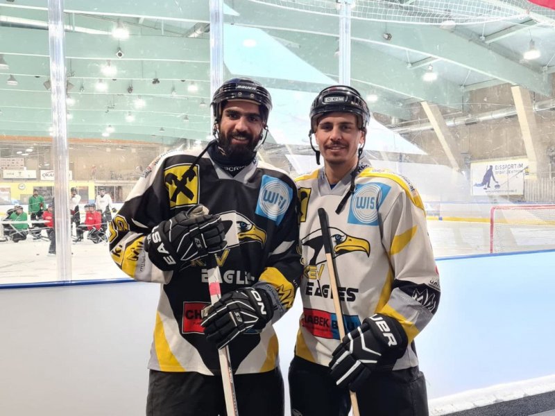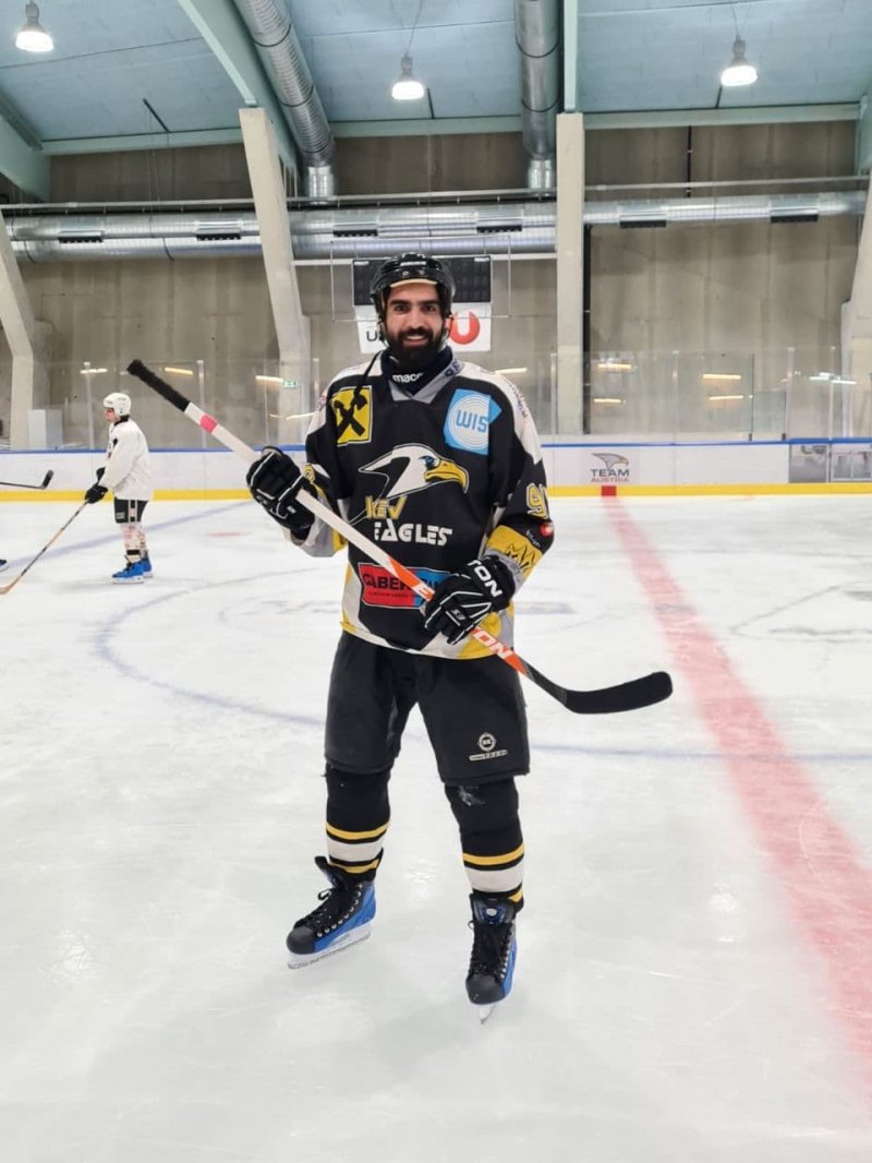 هافبک ایرانی سن‌پولتن اتریش به همراه دیگر هم‌تیمی‌هایش به بازی هاکی روی یخ پرداختند.
