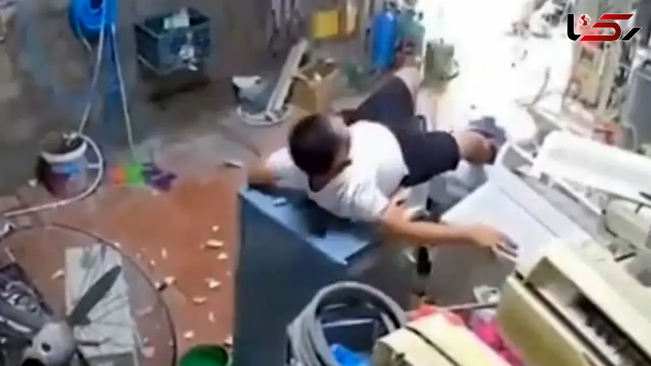 فیلم لحظه سقوط مرد جوان به انباری خانه / کف خانه دهان باز کردباز شد