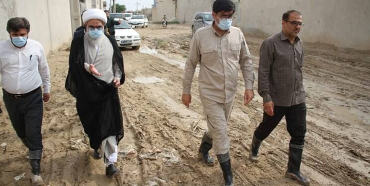 حضور امام جمعه بوشهر در خیابان های سیل زده برازجان