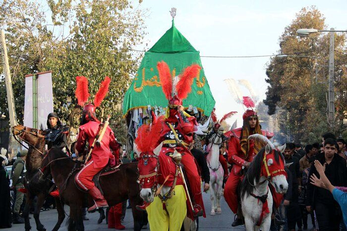 به گزارش خبرنگار ایرنا ، در این مراسم نمادین که روز یکشنبه با حضور عاشقان خاندان عصمت و طهارت برگزار شد، کاروانی متشکل از هنرمندان ورامین که تداعی کننده کاروان کربلا بود، از مقابل ناحیه مقاومت بسیج حرکت خود را آغاز کردند تا گوشه ای از مصائب خاندان عصمت و طهارت در واقعه عاشورا را به نمایش بگذارند.