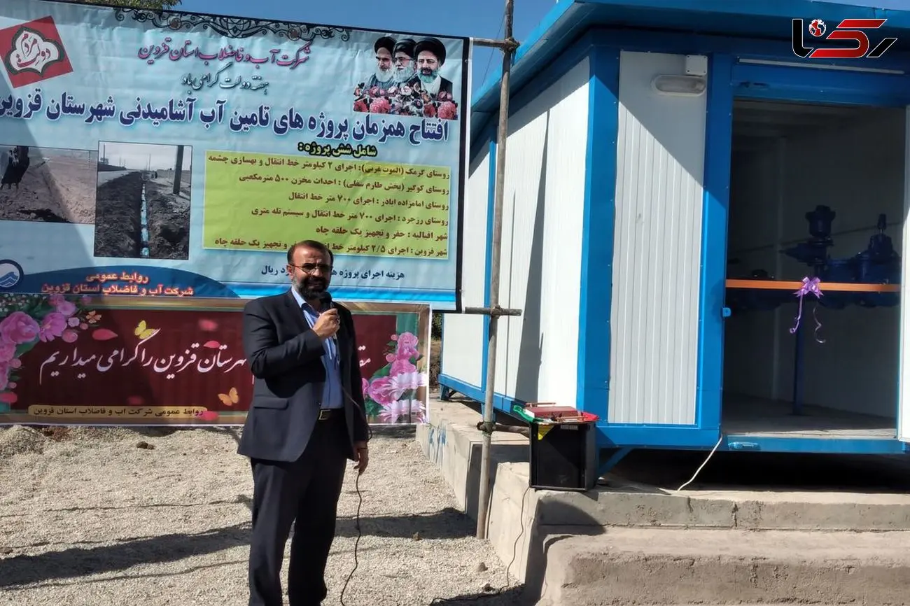 همزمان با ۲۱ پروژه تأمین آب آشامیدنی استان، ۶ پروژه شهرستان قزوین شامل اجرای ۲ کیلومتر خط انتقال و بهسازی چشمه گرمک الموت غربی، احداث مخزن ۵۰۰ متر مکعبی کوگیر طارم سفلی، خط انتقال ۷۰۰ متر امامزاده اباذر، اجرای ۷۰۰ متر خط انتقال و سیستم تلهمتری رزجرد، حفر و تجهیز یک حلقه چاه شهر اقبالیه و یک حلقه چاه در نسیم شمال به بهرهبرداری رسید.