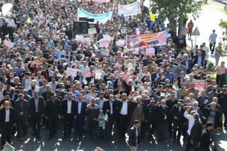 مردم ولایتمدار شهرستان پردیس از شهرهای بومهن، پردیس، خسرو آباد و سعید آباد در این مراسم پلاکاردهایی که رو آنها جملات ضد استکباری نوشته شده در دست دارند و آماده سردادن شعارهایی هستند تا نفرت و انزجار خود را به دشمنان نشان بدهند.