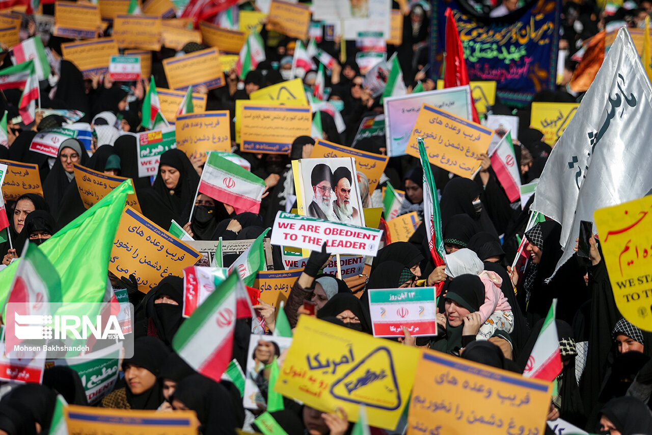مشاهدات خبرنگاران ایرنا در شهرستان های استان تهران نشان می دهد دانش آموزان و دانشجویان با سر دادن شعارهایی همچون "مرگ بر آمریکا"، " مرگ بر اسراییل"، " مرگ بر منافق"، "هیهات من الذله" و... بار دیگر نزجار خود را از سیاستهای خصمانه دشمنان نشان دادند.