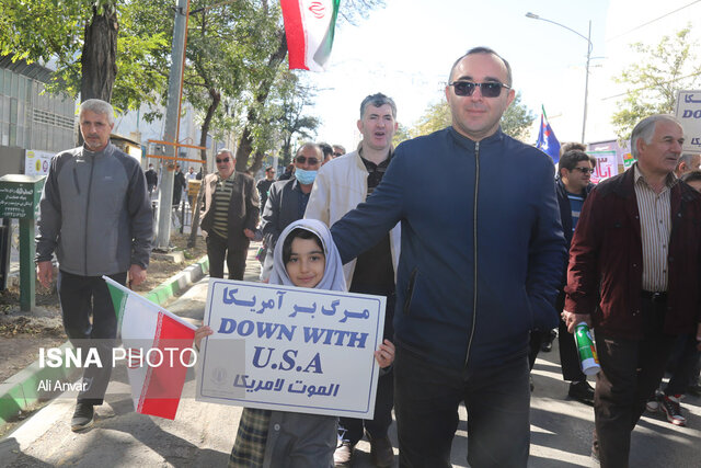 مراسم ۱۳ آبان ماه امسال متفاوتتر از هر سال و با حضور پرشور و باشکوه دانش آموزان و دانشجویان همزمان با سراسر کشور در شهرهای خراسان رضوی برگزارشد و شرکت کنندگان با مشتهای گره کرده فریاد" مرگ بر آمریکا" و "مرگ بر اسرائیل" سر دادند.