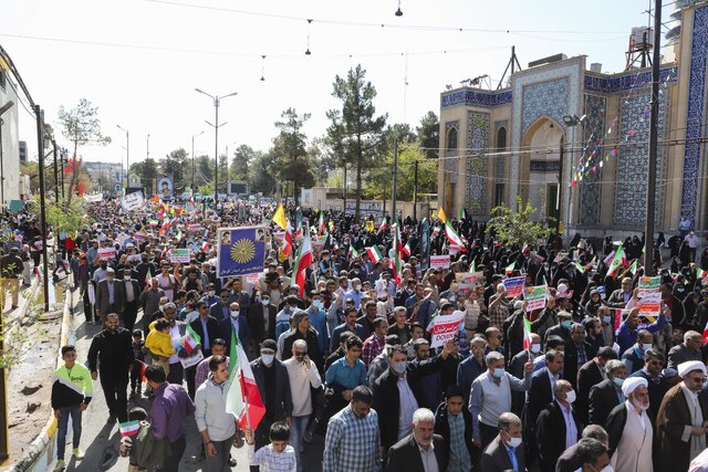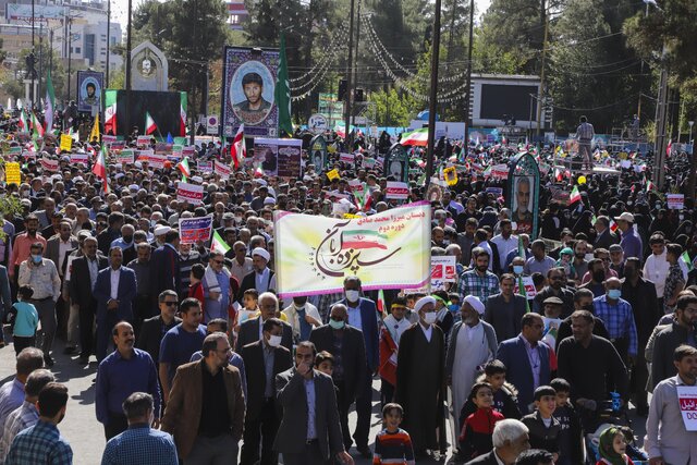 این درحالی است که همچنان دانش آموزان محور اصلی این مراسم هستند ولی با حضور اقشار مختلف مردم این مراسم رنگ وبوی متفاوت تر و پرشورتر از سالهای گذشته دارد و راهپیمایان در مسیرهای تعیین شده در حال تردد به سمت مصلی قدس قم هستند.