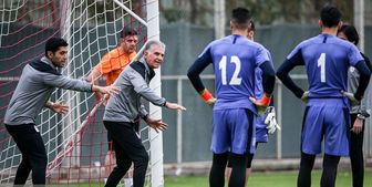* بازیکنان پس از صحبتهای کارلوس کیروش تمرینات خود را آغاز کردند، البته محمدرضا اخباری، پیام نیازمند،علیرضا بیرانوند و سید حسین حسینی، زیرنظر الکساندر لوپز، مربی دروازهبانان تیم ملی مرینات اختصاصی انجام دادند.