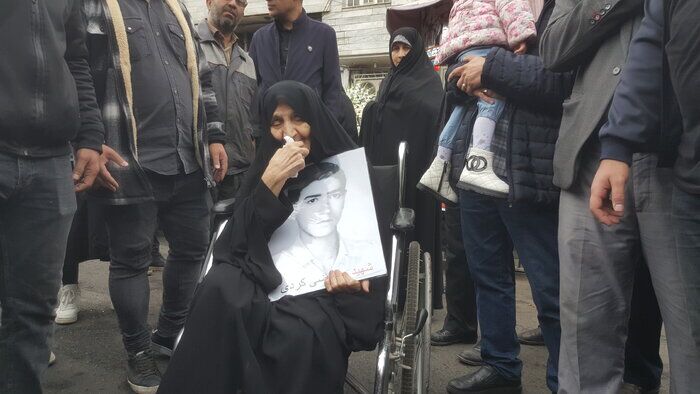 مادری که عکسی از نوجوانی پسرش را بر دست دارد و بر ویلچری تکیه زده است؛ فاطمه خانم که حالا سن و سالی ازش گذشته در آن هیاهوی جمعیت و شلوغی نگاهی به تابوت پسر شهید خود می اندازد و زیر لب آرام ذکری می گوید.