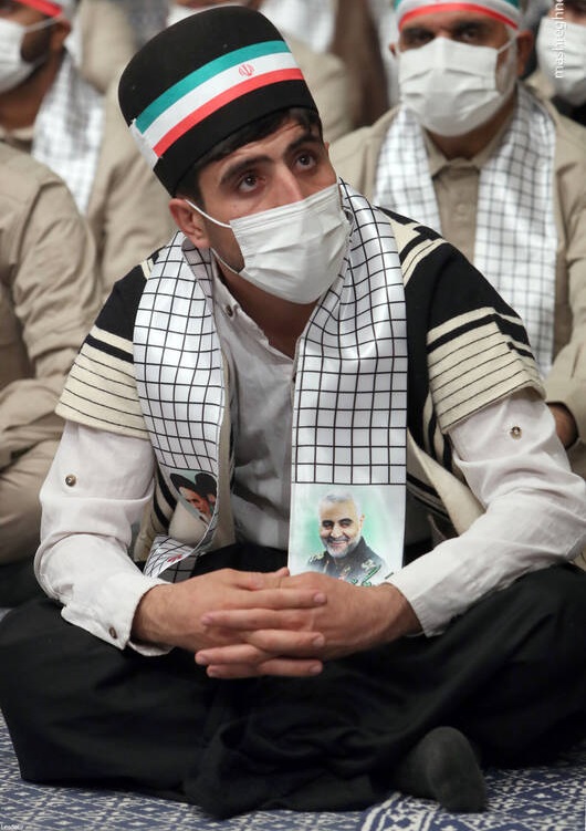 یکی از بسیجیان در دیدار امروز شنبه ۵ آذر ۱۴۰۱ با رهبر معظم انقلاب در حسینیه امام خمینی رحمتالله علیه با لباس محلی حاضر شد.
