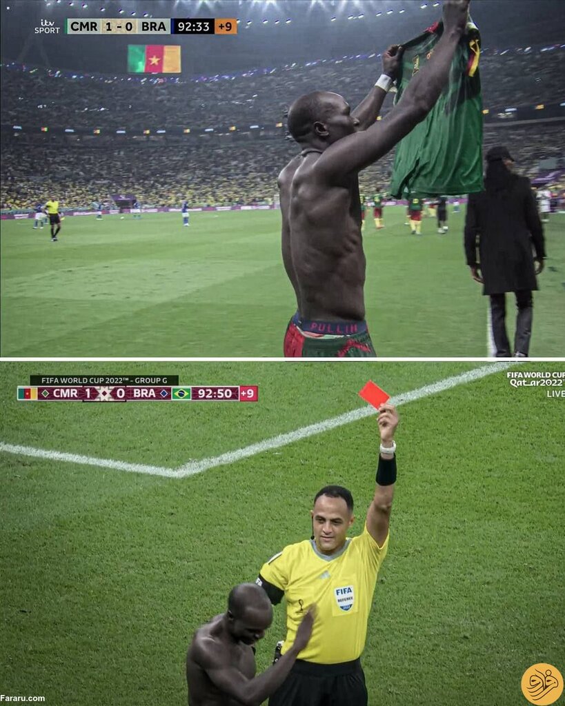 سانسور صحنه اخراج بازکن کامرون سبب شد که گزارشگر صدا و سیما متوجه این اقدام داور نشود.