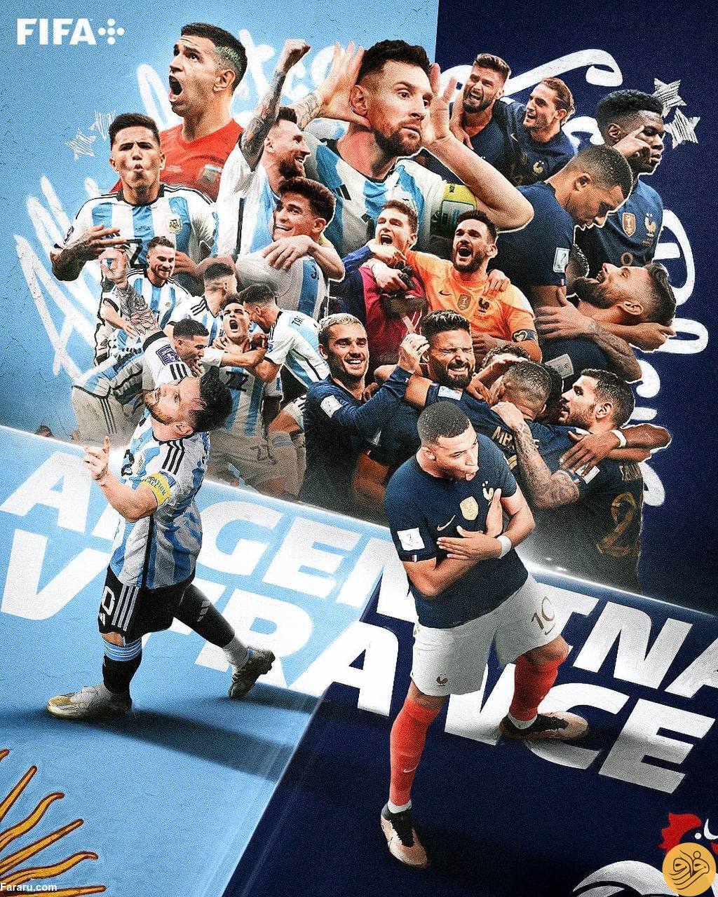 فیفا به بهانه برتری فرانسه مقابل مراکش از پوستر رسمی برای مسابقه فینال جام جهانی قطر بین فرانسه و آرژانتین رونمایی کرد.