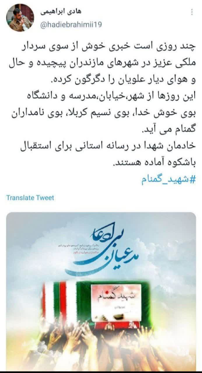 دکتر هادی ابراهیمی مدیر کل صدا و سیمای مازندران توئیتی در استقبال از شهدای گمنام منتشر کرد.