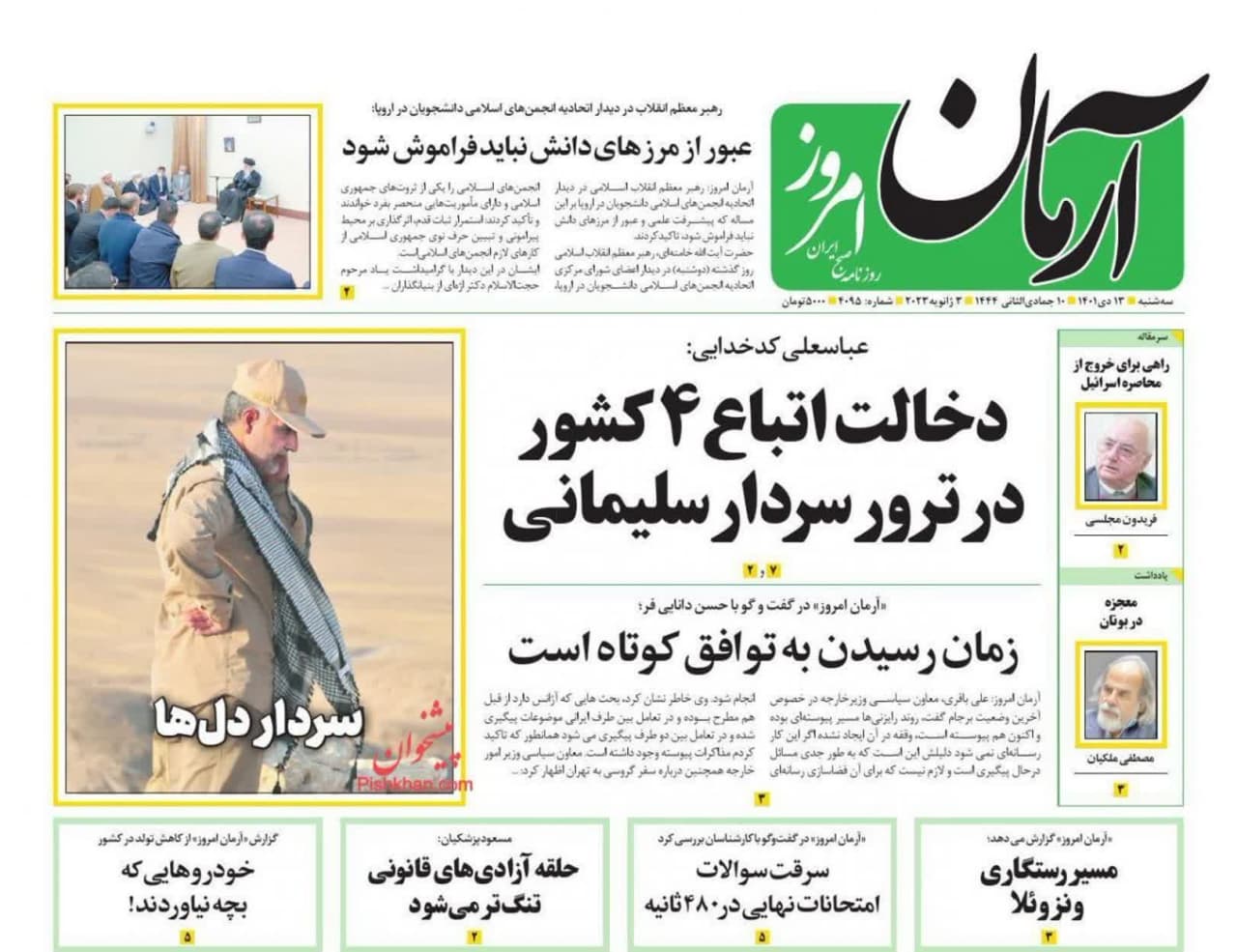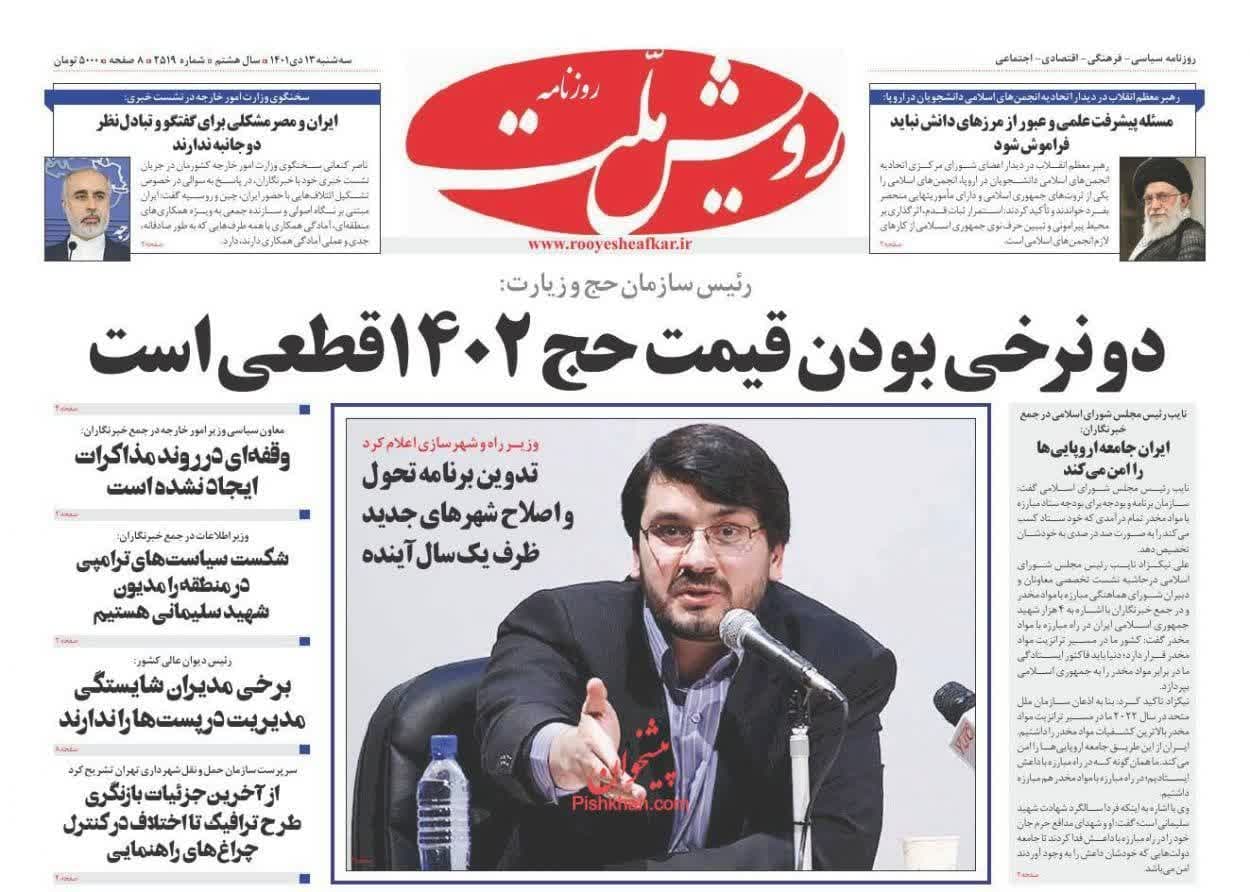 عناوین صفحه نخست روزنامه‌های سیاسی سه‌شنبه ۱۳ دی