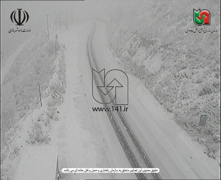 تصویری از جاده پوشیده از برف هراز را می بینید.