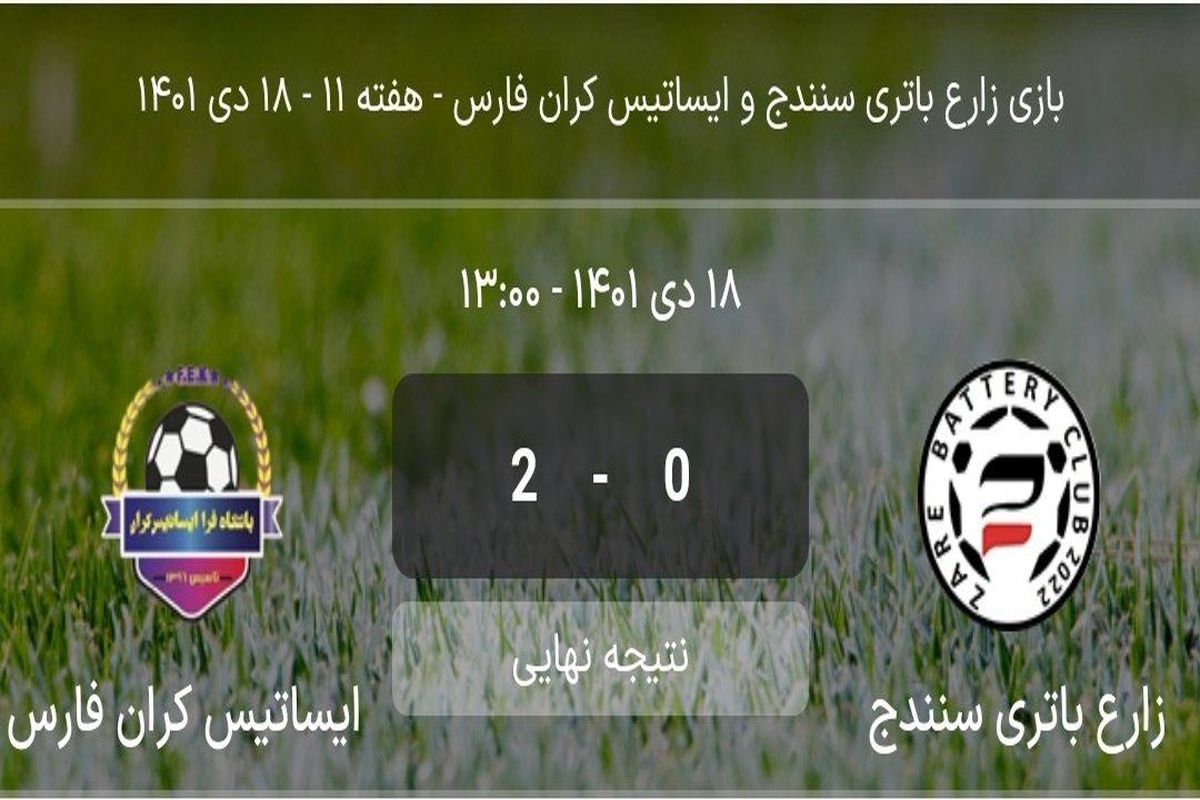 بانوان کردستانی در پایان دو نیمه از این دیدار که از ساعت 13 روز یکشنبه 18 دیماه در ورزشگاه ملک نیای سنندج آغاز شده بود نتوانستند گلی را به ثمر برسانند و در نهایت اینم تیم میهمان بود که با استفاده از موقعیت های خود با دو گل زارع باتری را مغلوب خود کردند و سه امتیاز شیرین این هفته را به حساب خود ثبت کردند.