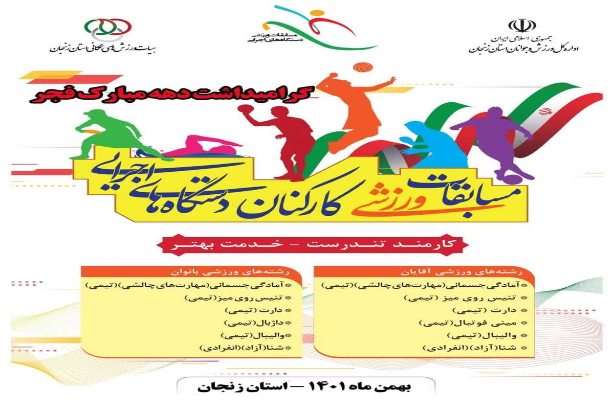 به گزارش خبرگزاری برنا از استان زنجان؛ رییس گروه ورزشهای همگانی وروستایی استان زنجان گفت: مسابقات ورزشی کارکنان دستگاه های اجرایی استان از یکشنبه 2 بهمن با شعار «کارمند تندرست- خدمت بهتر» و با همکاری هیات ورزش های همگانی استان آغاز شد.
