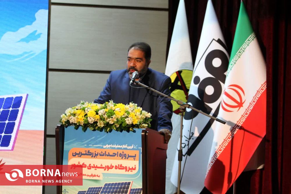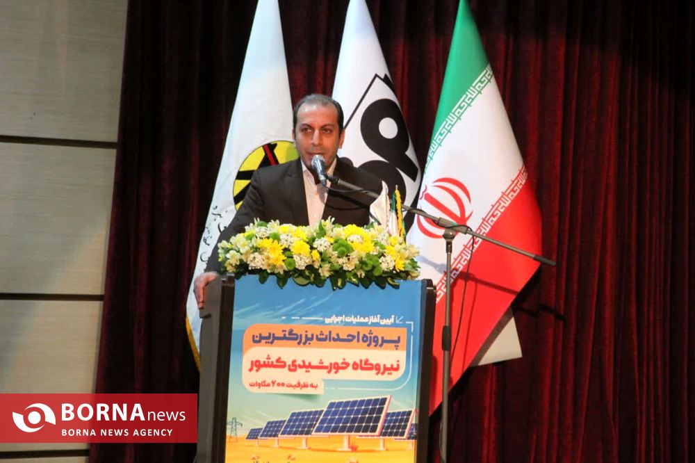 آئین کلنگ زنی بزرگترین نیروگاه خورشیدی کشور امروز با حضور میثم لطفی معاون رئیس جمهور ، سید رضا مرتضوی استاندار اصفهان ، یاسر طیب نیا مدیرعامل فولاد مبارکه در شهرستان کوهپایه استان اصفهان برگزار شد .