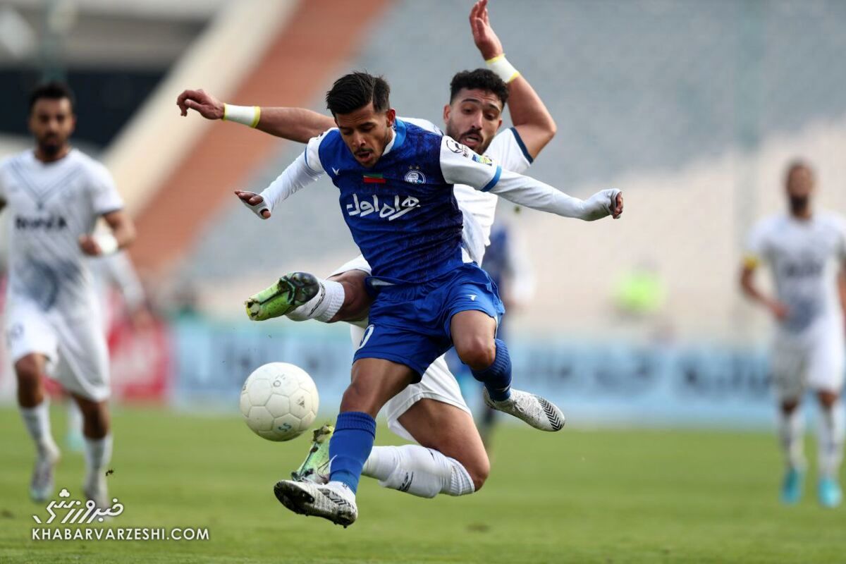 استقلال بعد از دو باخت متوالی و عقب افتادن ۸ امتیاز از پرسپولیس در برابر ملوان صف آرایی کرد و استرس نتیجه گیری از همان ابتدای بازی در چهره شاگردان ریکاردو ساپینتو مشهود بود تا اینکه پیش از سوت پایان نیمه اول از سوی داور حرکت مهدی قایدی از سمت چپ و پاس روی به جلوی او برای امیر ارسلان مطهری، پدرام قاضی پور مدافع چپ ملوان را به اشتباه وا داشت و او دروازه خودی را باز کرد. در ادامه محمد محبی یک گل زد تا استقلال نیمه نخست با برتری دو بر صفر به رختکن برود.