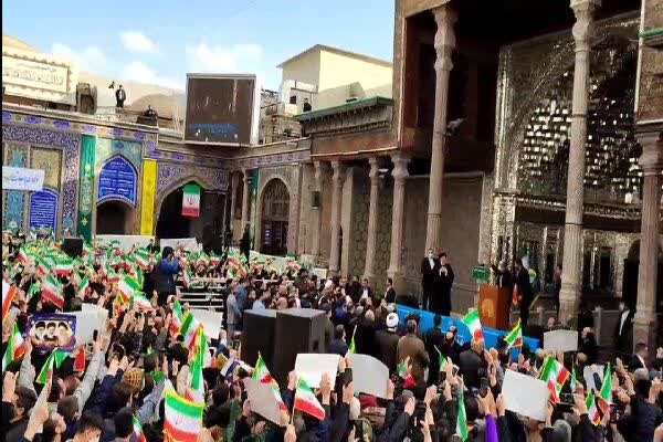 بر اساس این گزارش اقشار مختلف مردم شهرری که از ساعتها پیش برای حضور در جلسه دیدار مردمی حجتالاسلام رئیسی، رئیس جمهور کشورمان در صحن امام حسن مجتبی (ع) حرم سیدالکریم، حضرت عبدالعظیم حسنی علیهالسلام گرد هم آمدهاند، با در دست داشتن پرچمهای سه رنگ کشورمان، با نکوداشت آغاز چهل و چهارمین بهار انقلاب و ایامالله دهه فجر، سرودهای انقلاب را یکصدا و همآوا زمزمه کردند.
