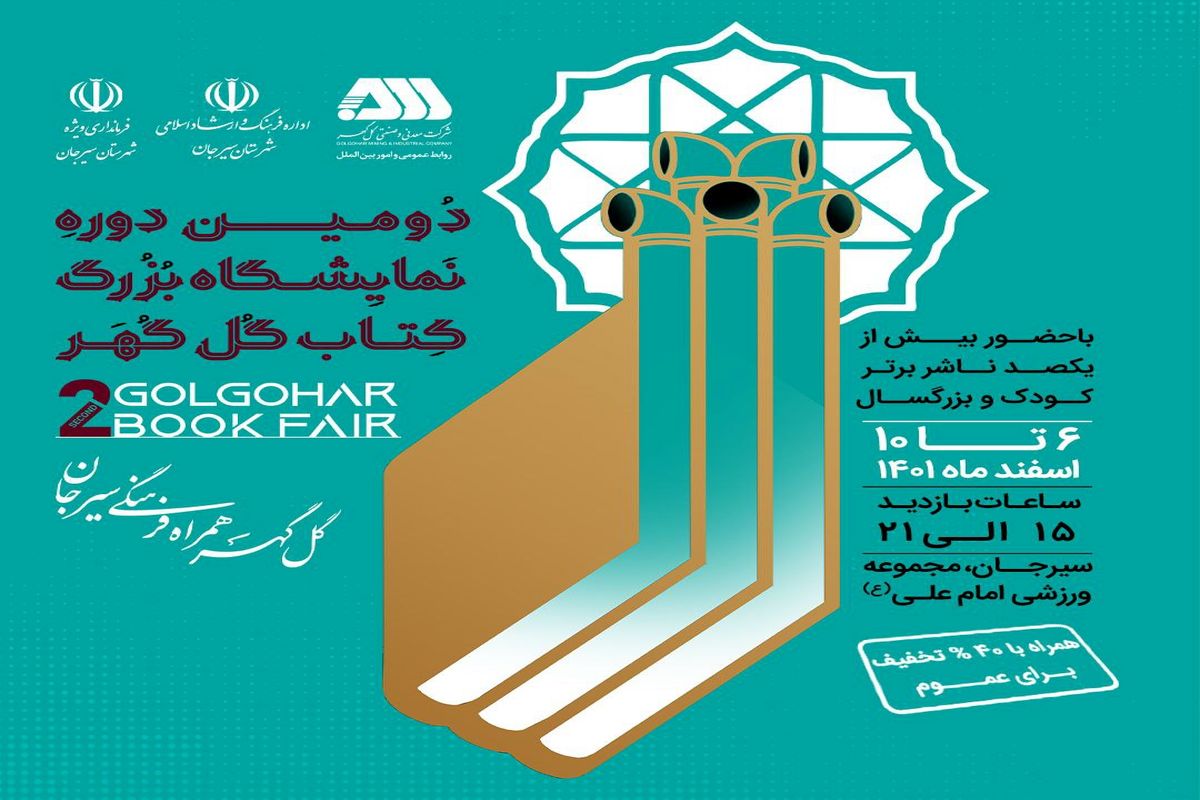 دومین دوره نمایشگاه بزرگ کتاب گلگهر با حضور بیش از یکصد ناشر برتر کشور در دو حوزه کودک و نوجوان و بزرگسال و با ۴۰درصد تخفیف ویژه عموم مردم توسط شرکت گلگهر و با همکاری اداره فرهنگ و ارشاد اسلامی و فرمانداری ویژه شهرستان سیرجان برگزار میشود.