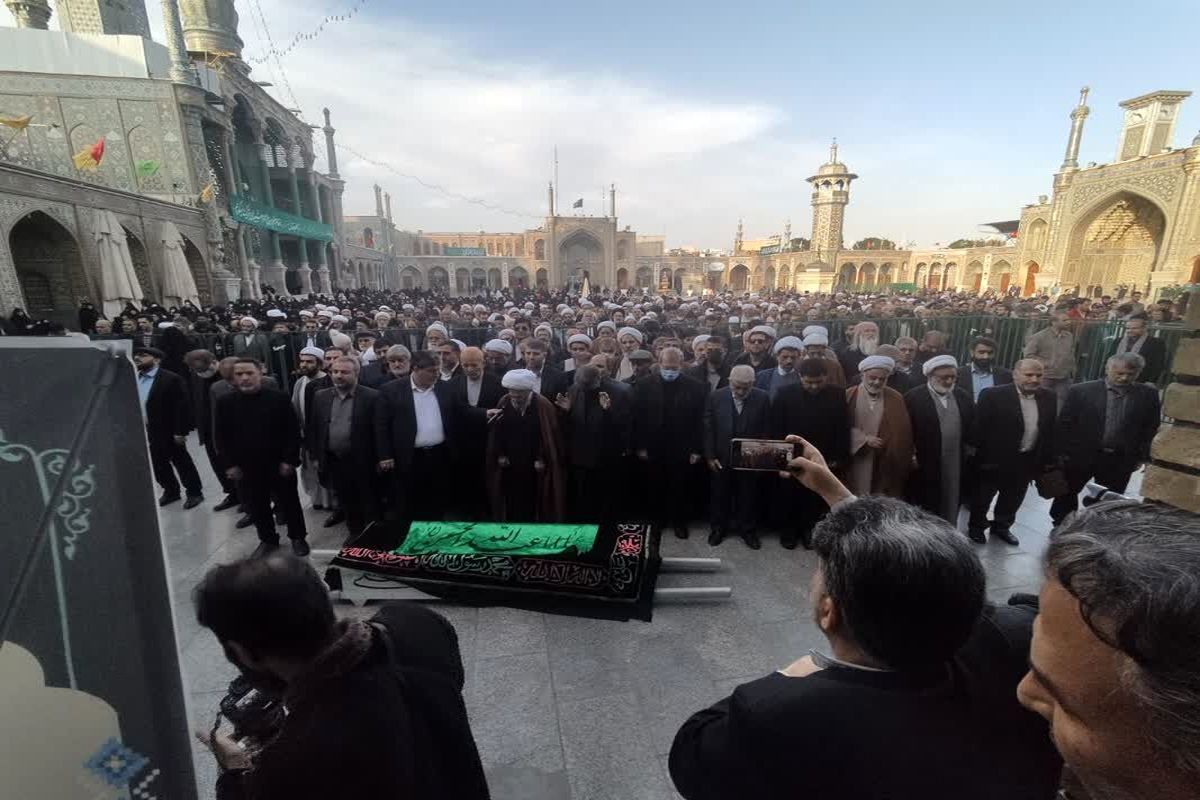 به گزارش خبرگزاری برنا از قم، در این مراسم که طلاب و روحانیان و اقشار مختلف مردم حضور داشتند ، پیکر همسر شهید مطهری از مسجد امام حسن عسکری(ع) قم به سمت حرم مطهر حضرت فاطمه معصومه(س) به حرکت درآمد و پس از طواف دور مضجع شریف کریمه اهل بیت(ع) و اقامه نماز توسط آیت الله جعفر سبحانی از مراجع عظام تقلید در یکی از حجره های حرم مطهر تدفین شد.
