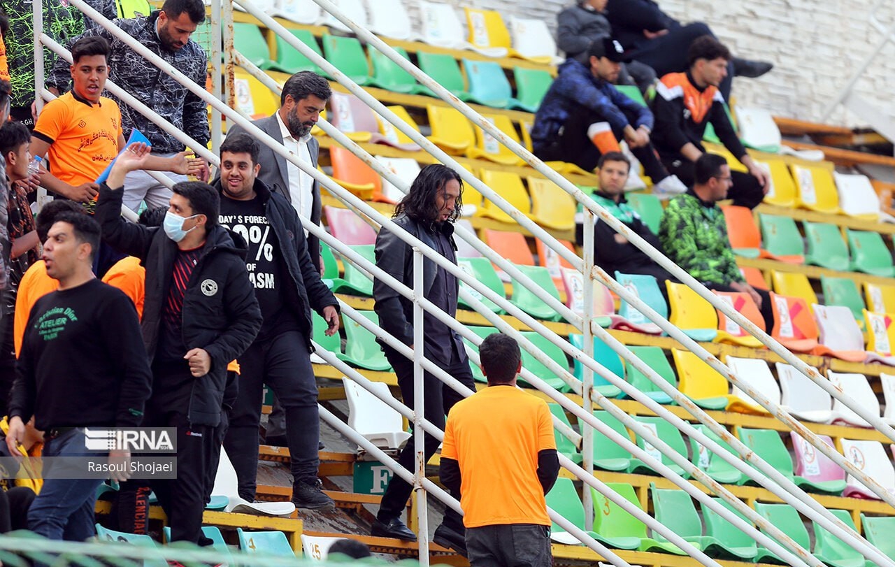 حسین خانی که بعد از چند دقیقه حاضر به ترک سکوها شد، سرانجام وارد جایگاه ویژه شد اما ترجیح داد در جایگاه خبرنگاران بنشیند.