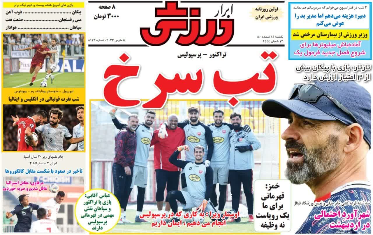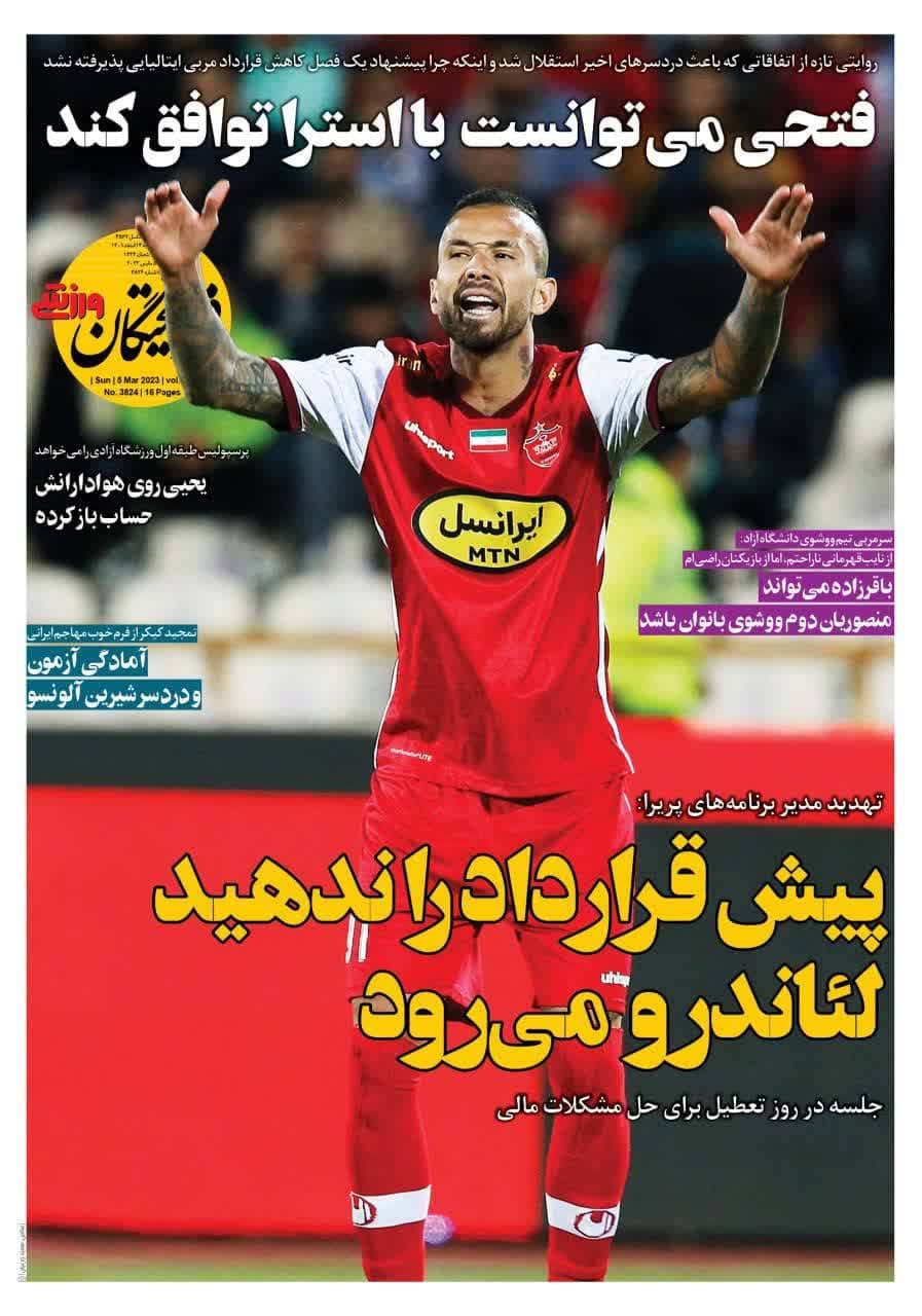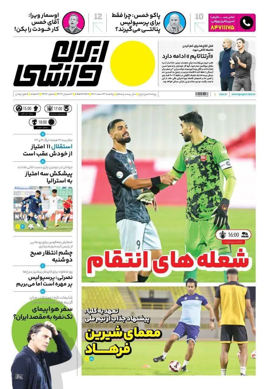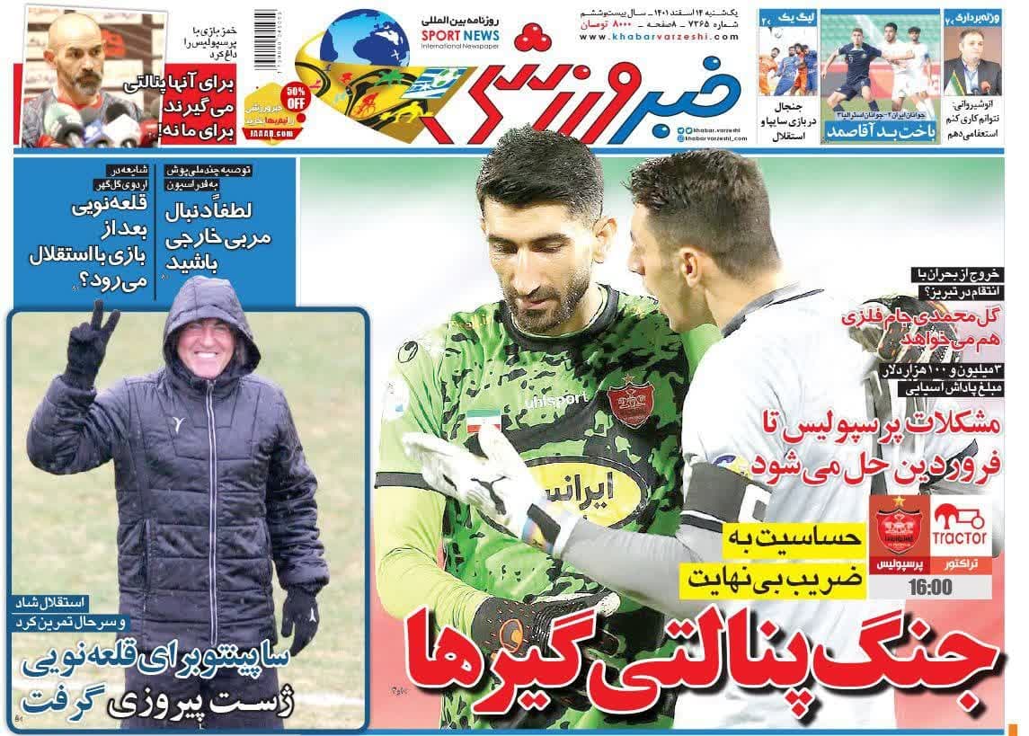 صفحه نخست روزنامههای ورزشی امروز (يکشنبه ۱۴ اسفند) را در ادامه مشاهده میکنید.